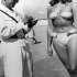 Italian police officer giving woman a ticket for wearing a two piece bikini on a beach in Rimini, Italy. (1957) Korean business owners protecting their stores during the LA riots in 1992.