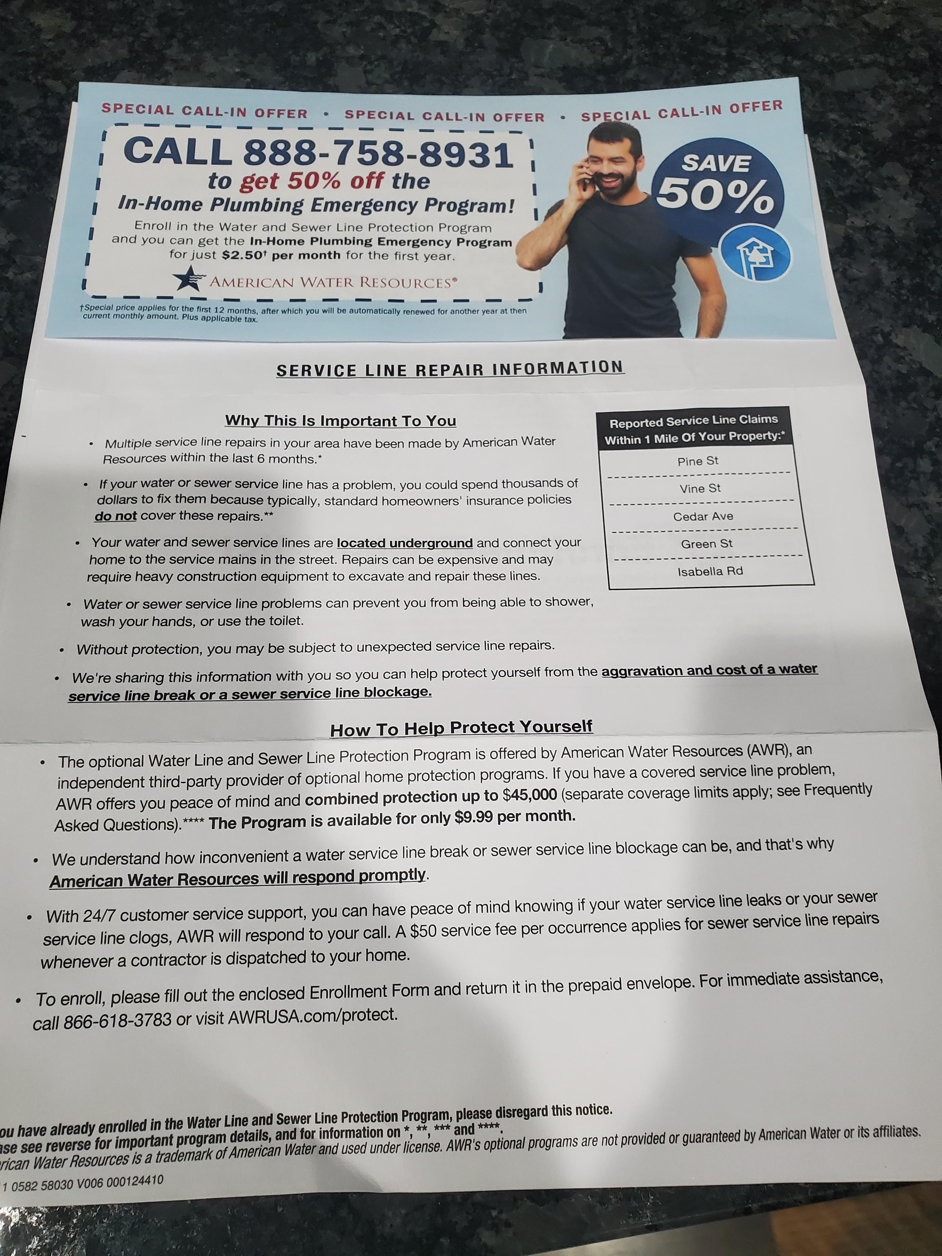 This. $65 a year service line endorsement