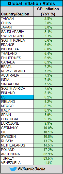 Taiwan, China, and Japan have lower inflation than Switzerland.