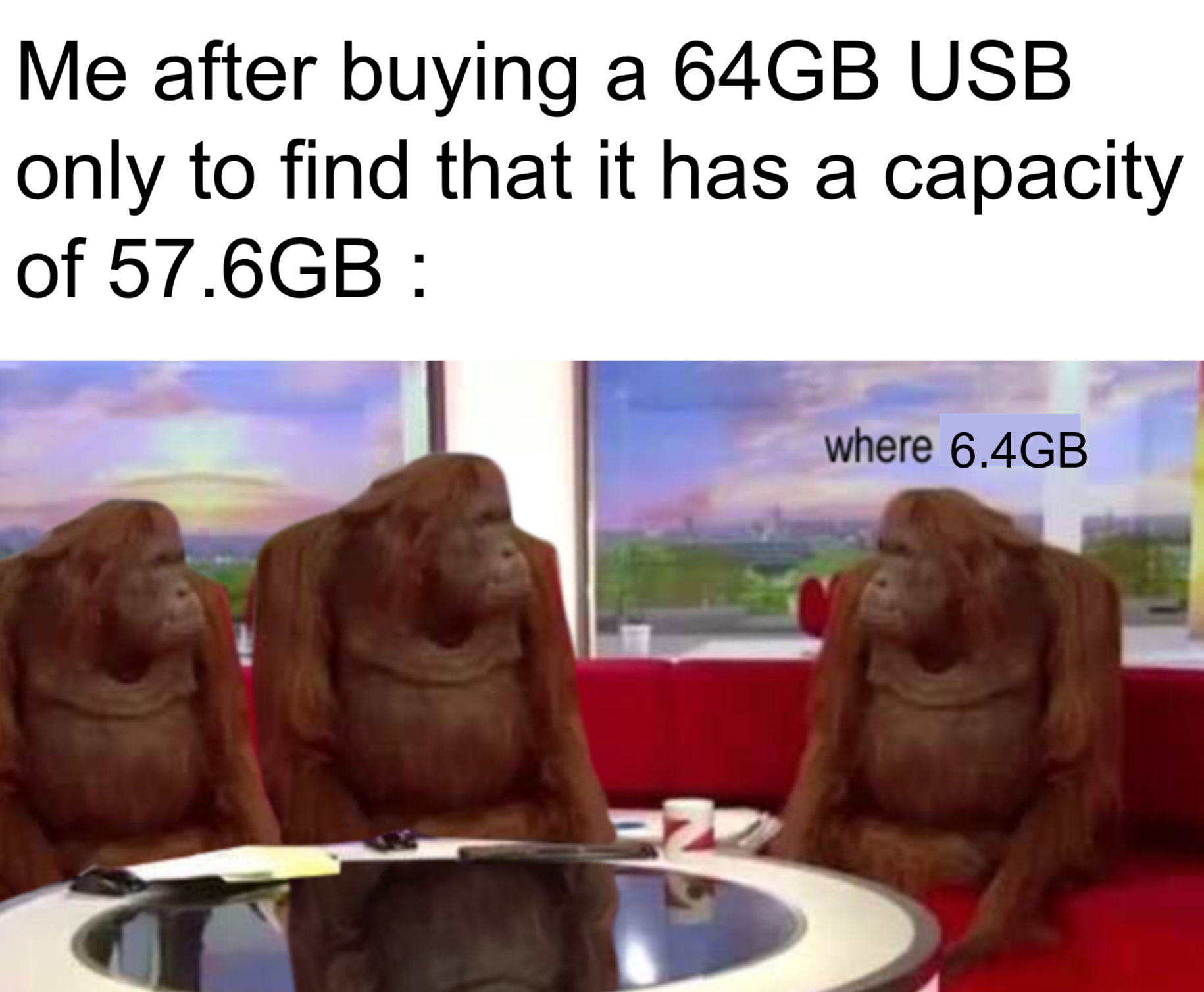 Where my 6.4 GB Submitted by cardiacbadge48 t3_z8yuuf on November 30, 2022 at 6:24 PM in memes 11 comments 1,347