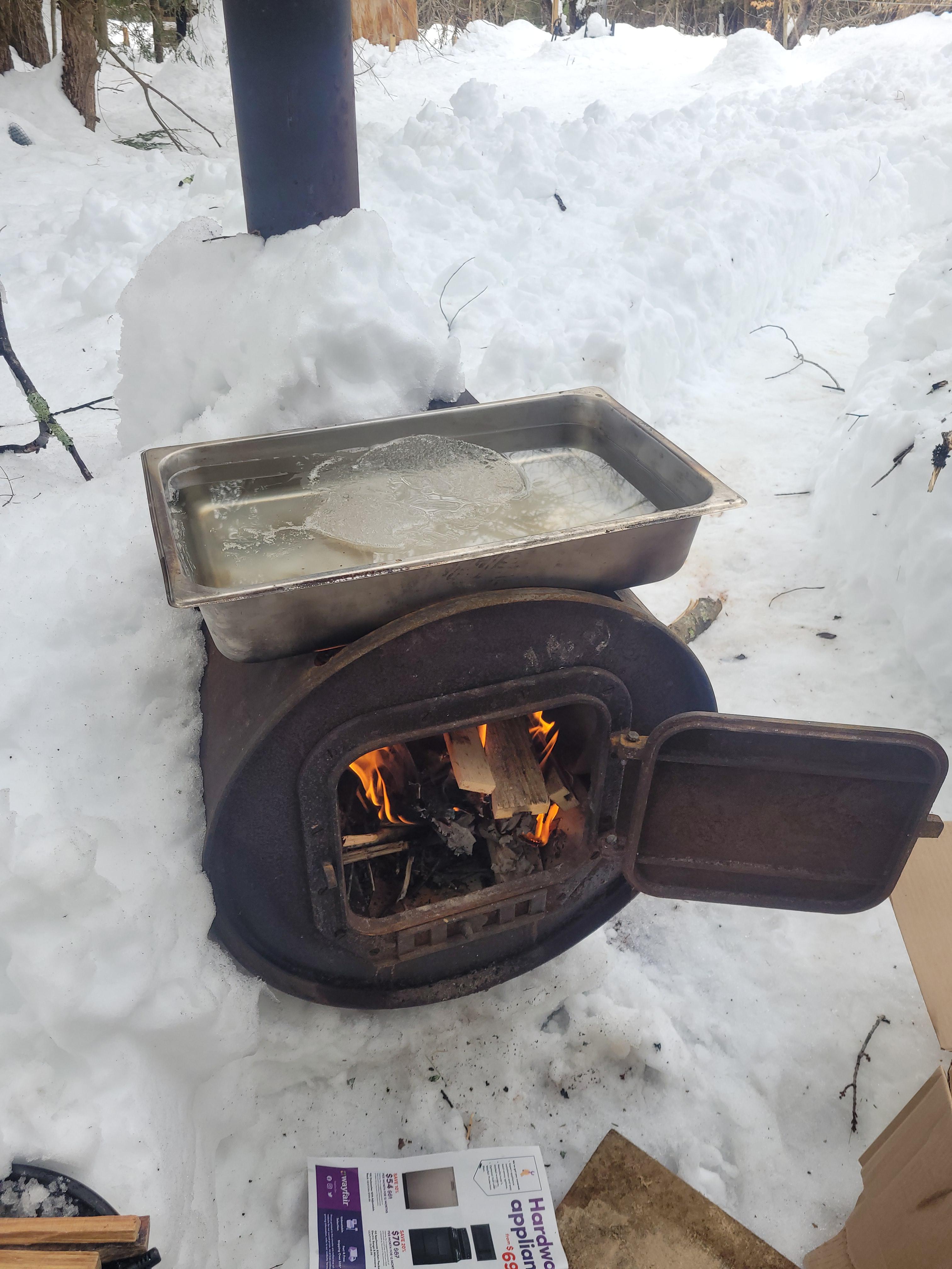 Seeing this makes me nostalgic. When I was a kid there were a bunch of maple trees on my dad's property that we'd go out and tap and boil the sap in an old boiler he'd cut up. The smell is fresh and heavenly
