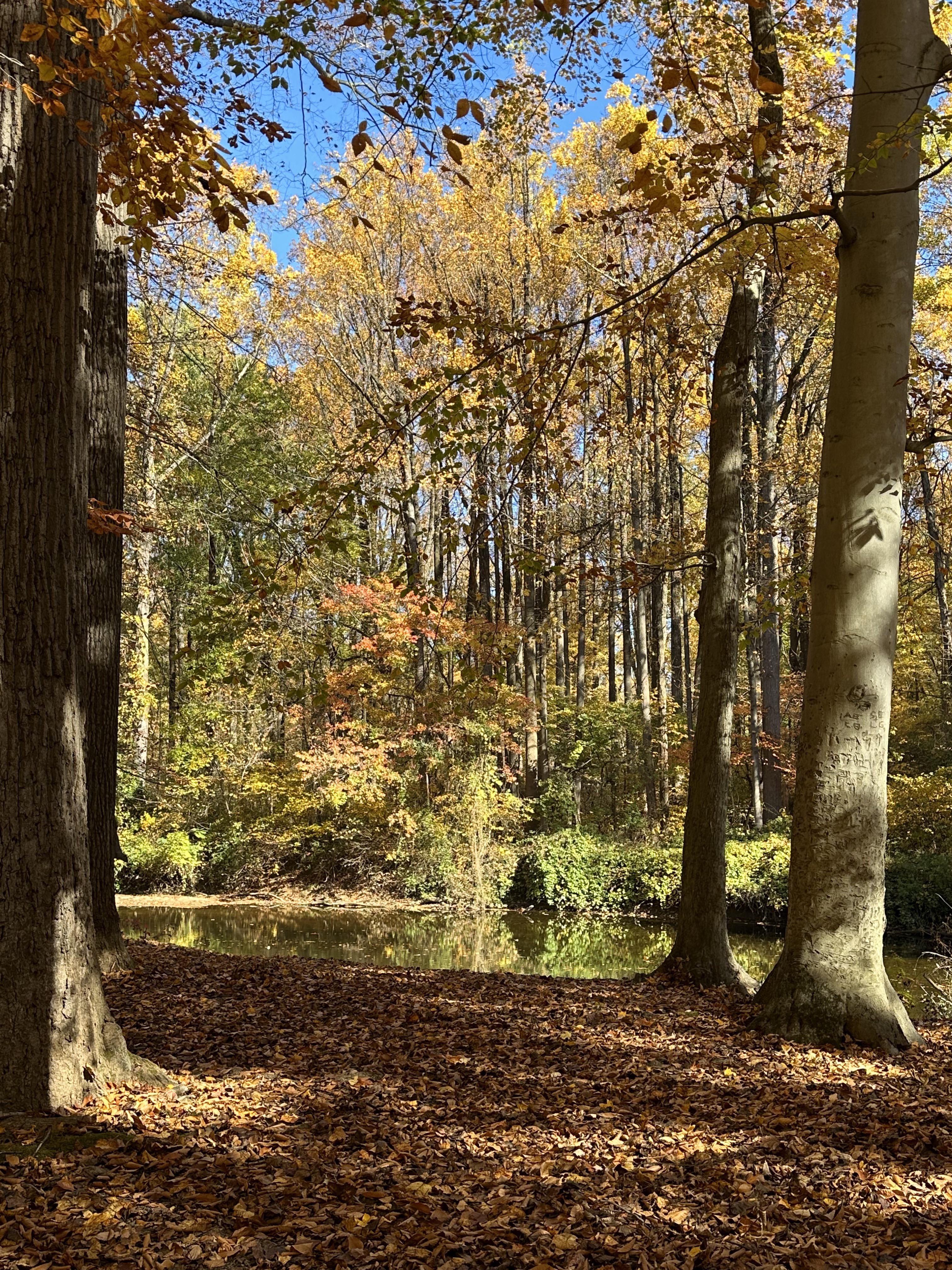 It’s about a mile down from the Pine road entrance. They just fixed a patch of the bike path there but you can’t see it because of all the leaves. A few trees came down over the summer. It looked like this though just about everywhere we walked yesterday .