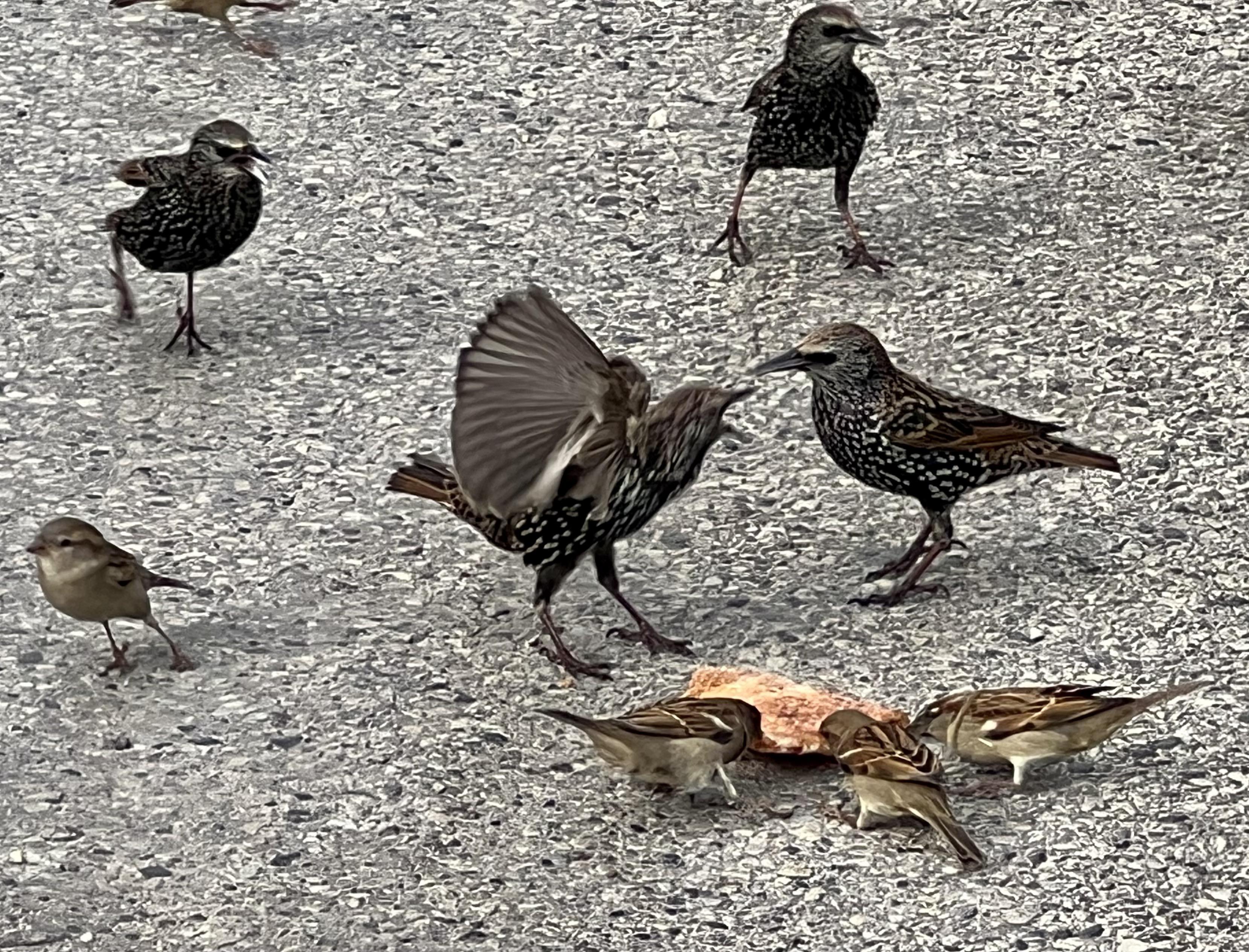 Until the pizza disappeared, which wasn’t long. Those starlings weren’t fuckin’ around.
