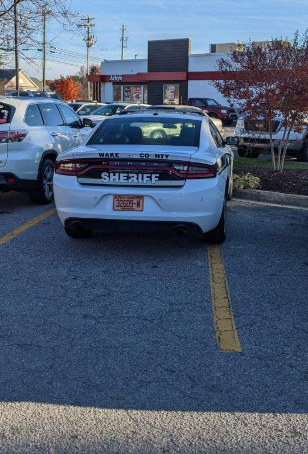 I know OP disagreed, but I'm with you. I can't see how sliding the car over 8" to fit properly wouldn't result in a door ding, especially since that's an Arby's and THEY HAVE THE MEATS.