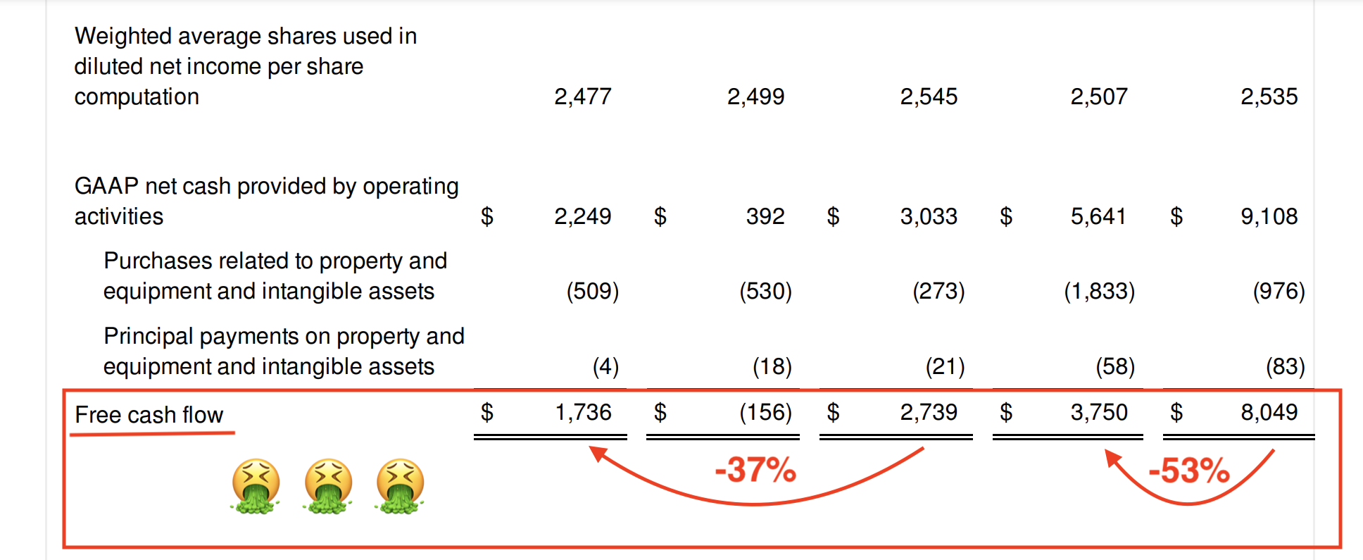 NVIDIA Free Cash Flow Massively Down. -53% for Twelve Months Ended Submitted by FI_investor t3_119oue7 on February 23, 2023 at 4:51 AM in wallstreetbets 205 comments 603
