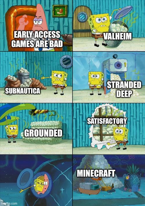So many good Early Access games (thanks to u/Zijlboy for the idea) Submitted by Skullz64 t3_1096qkd on January 11, 2023 at 2:59 PM in memes No comments 2